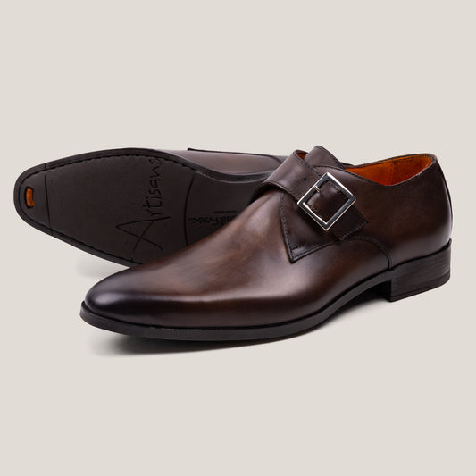 ROMA Monk-Strap Dress Shoes in Cacao Brown Vitello Italian Hand Made